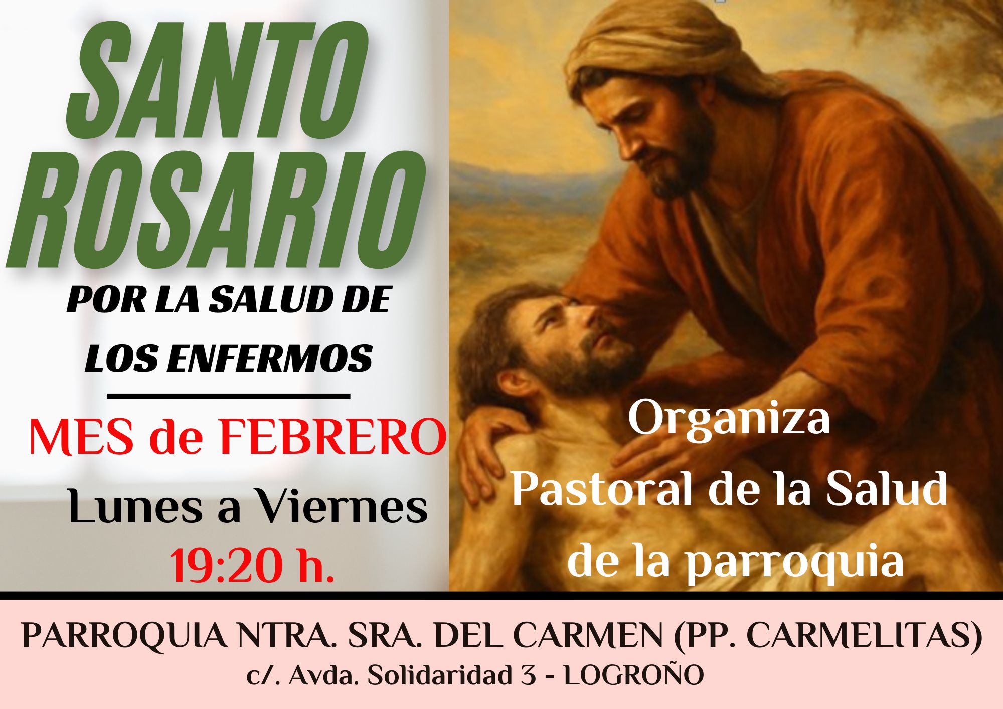 Durante todo el mes de febrero, tendremos un rosario a las 19:20 h por la salud de los enfermos.